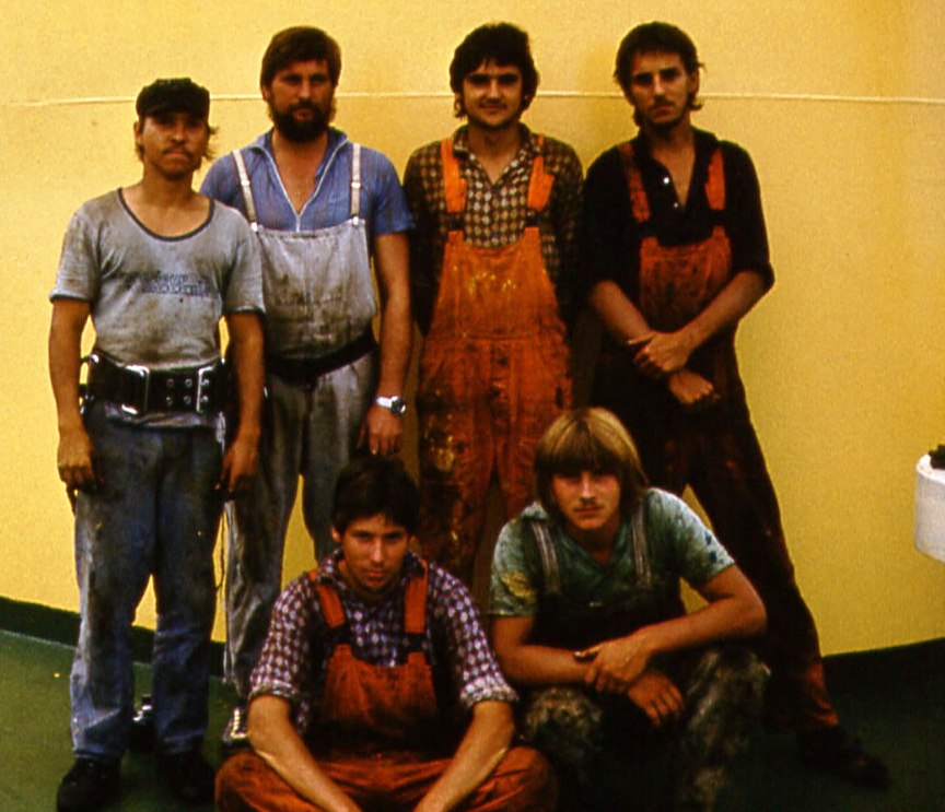 Auf der MS Nordhausen vor dem Schornstein. Bootsmann und wir Lehrlinge.